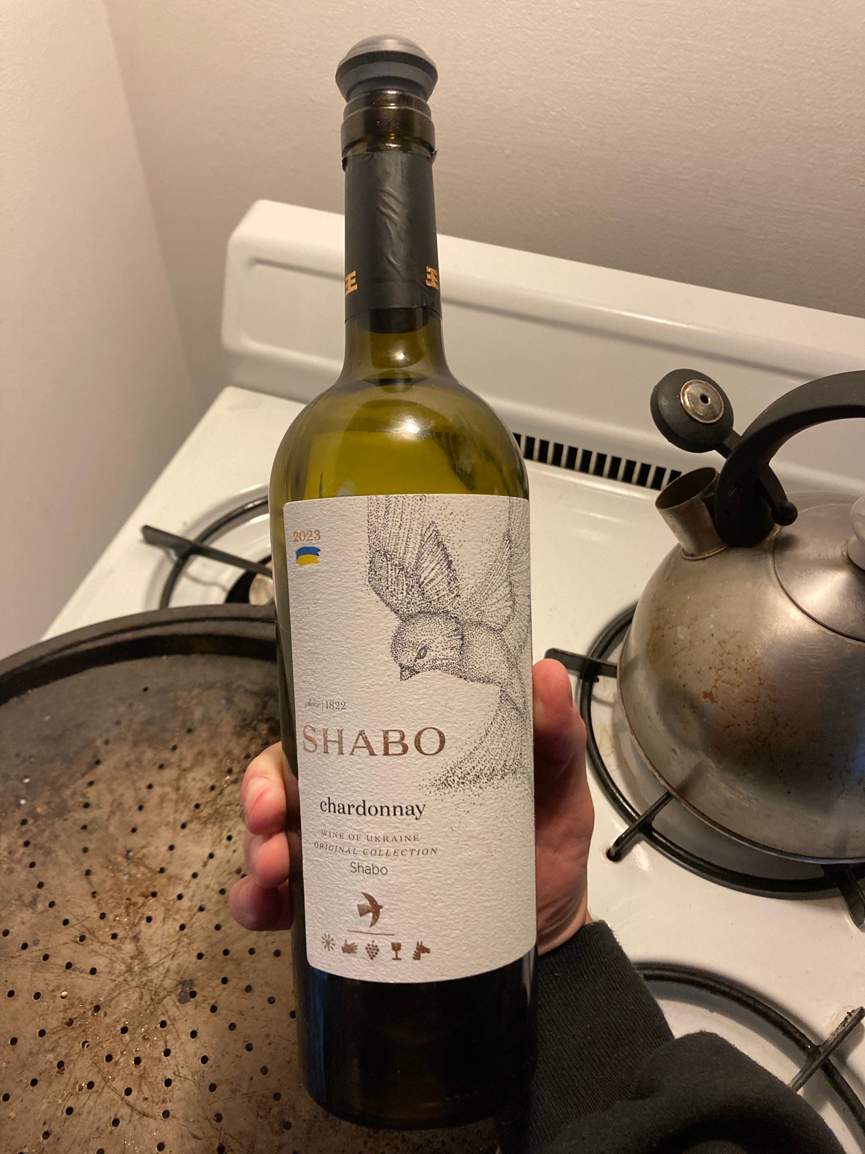 Shabo Chardonnay. You would think that my years stalking the liquor aisles of Ridgewood, QNS, and their stocks of various central and eastern European wines and spirits would have led me to already discover Shabo. But no: It was Mel at Perry’s Liquors in Provincetown. The Shabo winery is located in an eponymous town on an estuary in the far southwest of Ukraine, past Odesa toward Moldova. It’s alien territory for American drinkers, but wine has been made there for thousands of years, as it has in the more well-marketed Georgia across the Black Sea.
